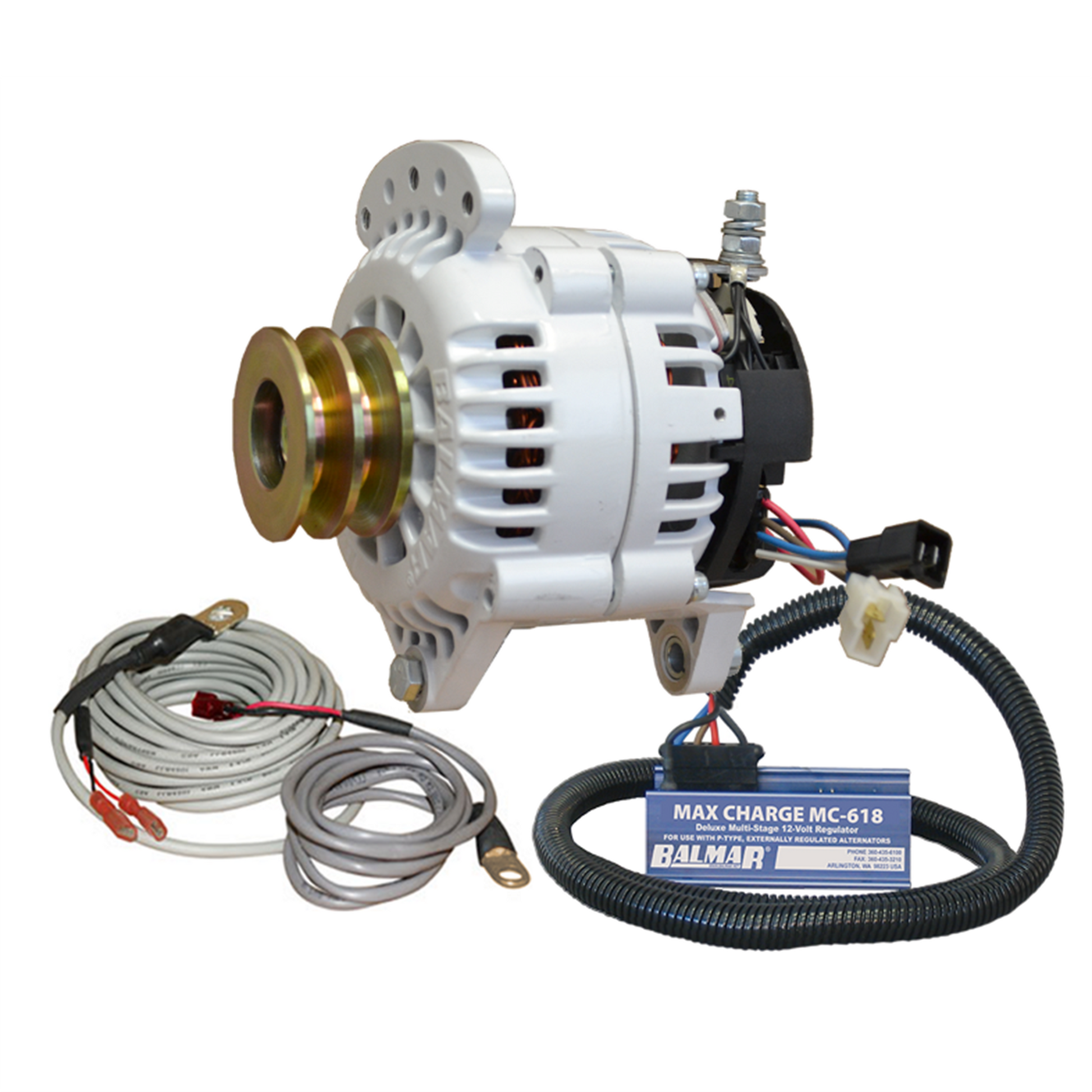 The 60 Series 120a SaddleMT Alternator, with MC Regulator, DV delivers high-output performance in a compact, small-case package. This kit comes with an alternator, regulator and two temperature sensors.